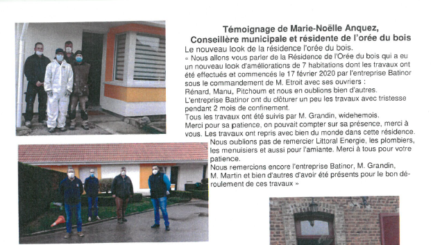 « Nous allons vous parler de la résidence l’Orée du Bois qui a eu un nouveau look d’amélioration de 7 habitations dont les travaux ont été effectués (…) par l’entreprise Batinor…”